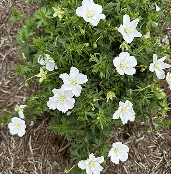 Geranium sanguineum 'Snowflake' Pure white flowers, May to September, on compact clumps. Lovely for the border front. Sun or part shade, 30cm. high. Price: £7.50 Plant Breeders Rights apply.