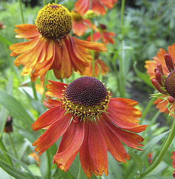 Helenium 'Moerheim Beauty' Strong showy old cultivar, flowering late summer to autumn. Dark copper-red flowers with brown central disc in profusion on 90cm stems. Price: £8.00