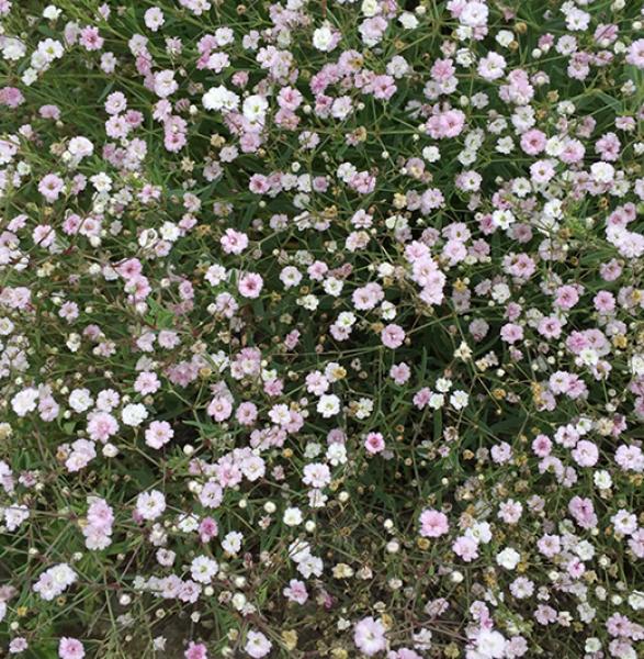 Gypsophila 'Rosenschleier' A cloud of tiny pale-pink double flowers form a mound 45cm. high. Good on a rockery or at the border front in sun and well drained soil. Price: £7.50