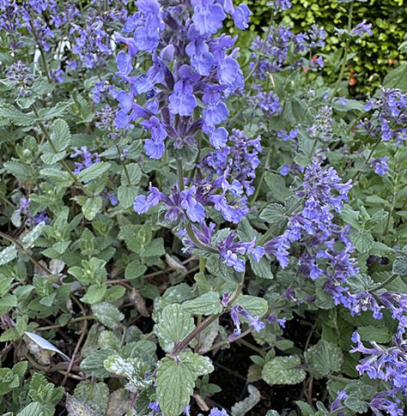Nepeta x faassenii 'Purrsian Blue' A very floriferous compact 'Catmint' producing a mass of periwinkle-blue flowers from early summer to early autumn. Low maintenance and drought-tolerant easy plant for a sunny site. 45cm. high. Price: £7.50