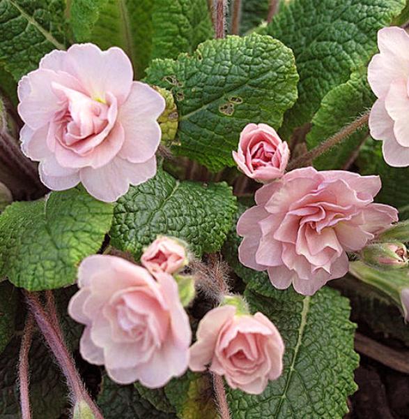 Primula 'Sue Jervis' Very beautiful pale pink double form. Easy in fertile soils in sun or part shade. 15cm. high. Price: £7.50