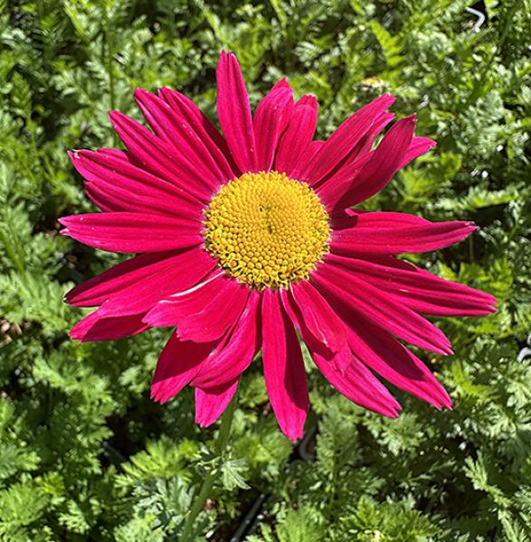 Tanacetum Radiant Deep Pink' Vivid deep pink daisies with contrasting yellow centres on strong upright stems. Flowering early spring into summer, for sun or part shade. 60cm. high. Price: £8.00