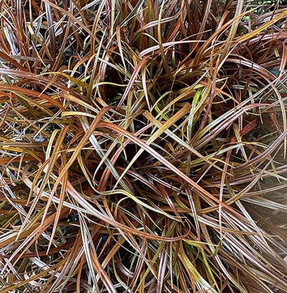 Uncinia rubra Tufted evergreen perennial sedge with glossy dark red-brown foliage. likes damp areas in sun. 25-30cm. high. Price: £7.50