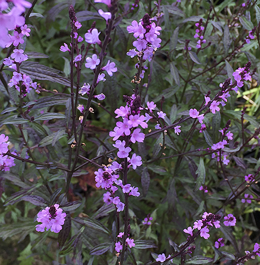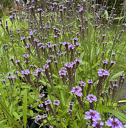 Verbena macdougalii 'Lavender Spires' Hardy clump-forming perennial with tall branching stems of lavender purple flowers from June to September. Very attractive to bees and butterflies. 120cm. high. For sun.