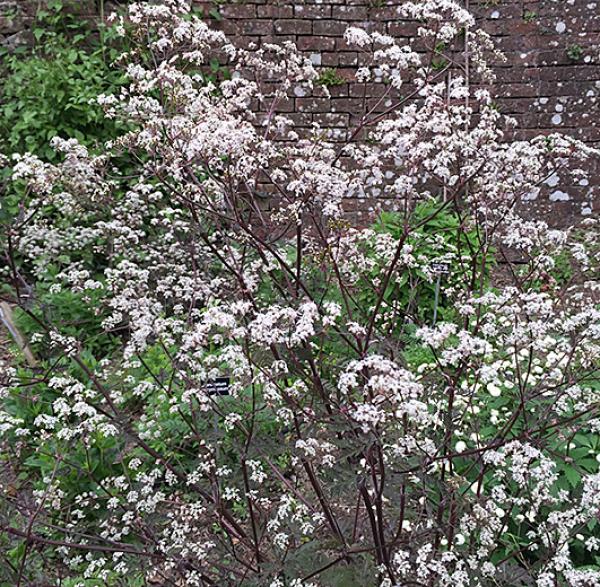 Anthriscus sylvestris 'Ravenswing' This very decorative 'Cow Parsley' has darkest purple stems and dark, lacy foliage with heads of tiny white flowers in late spring and early summer. For sun or part shade 50cm. high. Price: £7.50