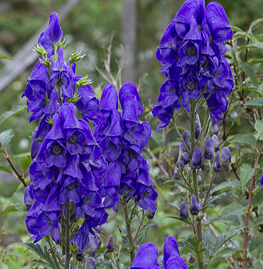 Aconitum carmichaelii Divisions from a very good form. Strong upright stems carry very large vibrant blue flowers in early September and October. For fertile soil in sun or part shade. 1.2 -1.4m. high.