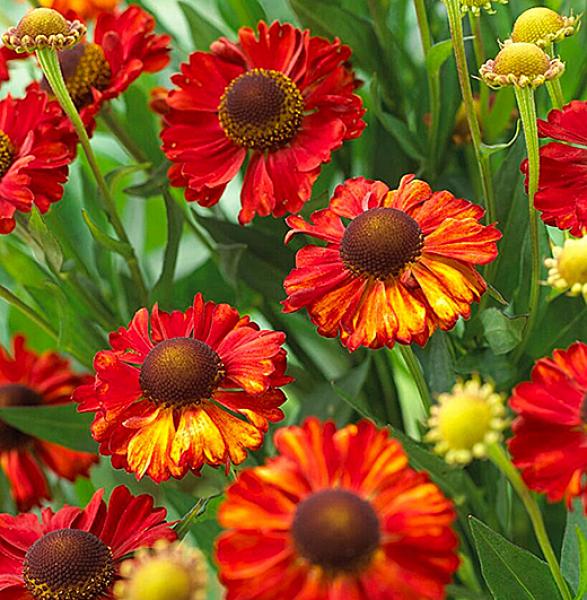 Helenium 'Moerheim Beauty' Strong showy old cultivar, flowering late summer to autumn. Dark copper-red flowers with brown central disc in profusion on 90cm stems. Price: £8.00