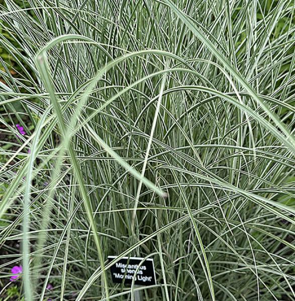 Miscanthus sinensis 'Morning Light' My favourite grass, the white margins to the leaf blades create a lovely silvery effect. Good hardy, upright habit. 120-150cm. high. Price: £8.00