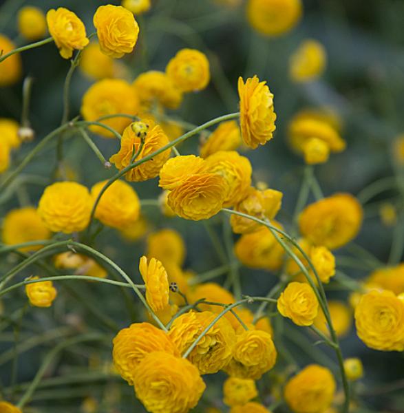 Ranunculus constantinopolitanus 'Plenus' Dense clumps of divided leaves and green centred, double yellow flowers from mid-spring to mid-summer. Best in a dampish soil. 30cm. high. Price: £8.00