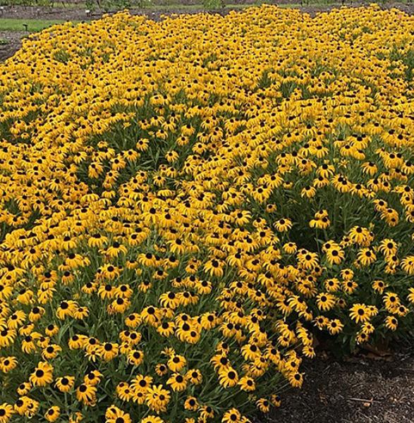 Rudbeckia 'American Goldrush' A new compact variety with a mass of golden yellow flowers July tp September. Perennial Plant of the Year 2023. For sun or part shade. 60cm. high. Price: £8.00