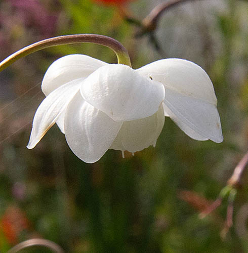 Anemonopsis macrophylla 'White Swan' Beautiful pure white form, dark leafless arching stems carry waxy white flowers. Summer flowering, Shade and deep fertile, humus-rich soil essential - will not flourish in hot, dry sites 60-70cm. high.