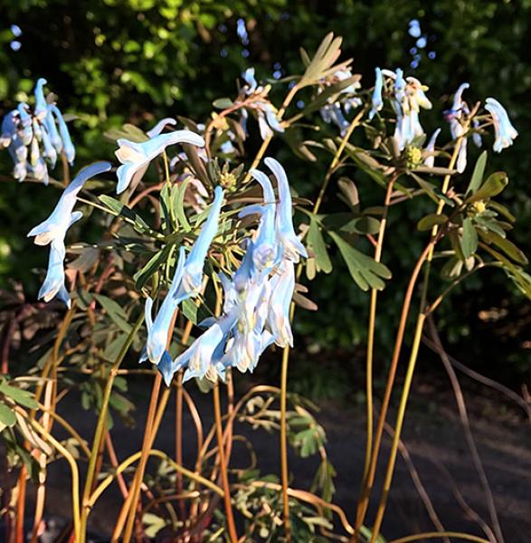 Corydalis 'Porcelain Blue' Spreading mats of fern-like foliage with intense aqua-blue flowers for a long summer season, often into the autumn.. Fertile soil in light shade. 30cm. high. Price: £7.50 Plant Breeders Rights apply.